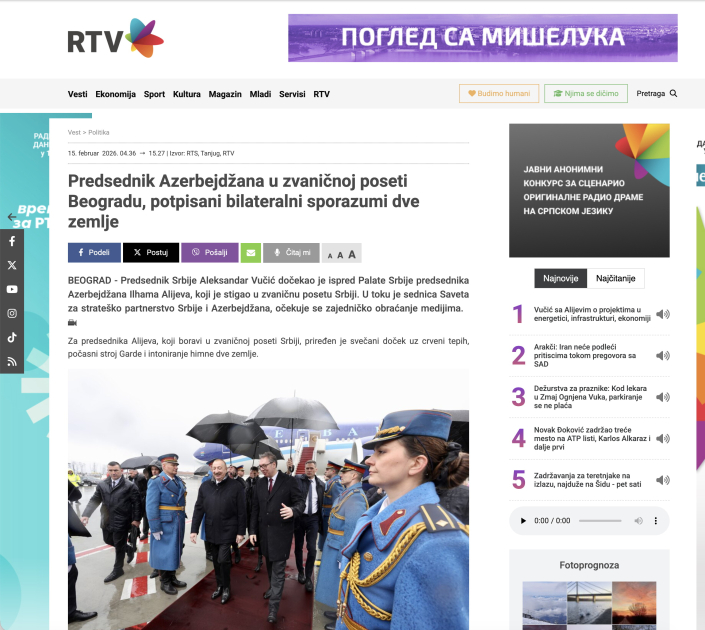 Strategic partnership between Baku and Belgrade in Serbian media spotlight